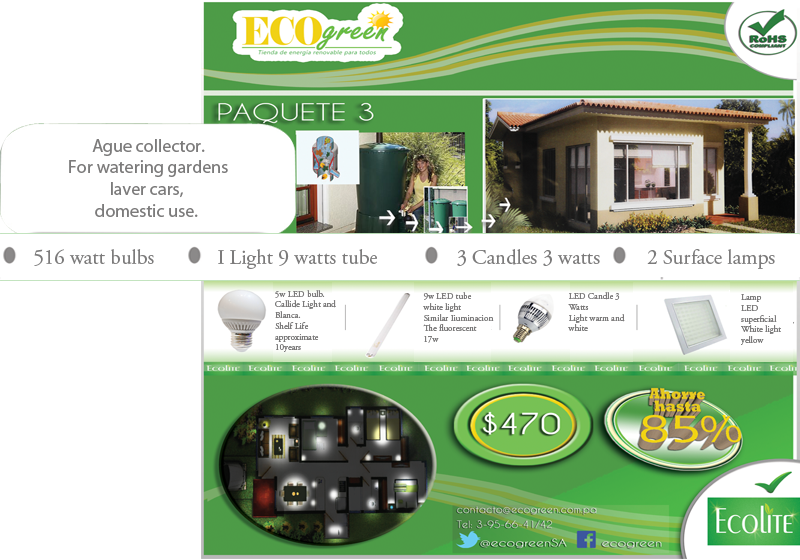Please note that these Green Options are provided by reliable suppliers, Our Company will provide you the details of those suppliers concerned in the event that you purchase any of these packages, you will be buying directly from those suppliers and all the issues regarding any warranties or Guaranties will be the sole responsibility of the suppliers and the Purchaser. KNK Developments SA will not be responsible for any issues that may arise between the Purchaser and the Suppliers, they have to sort that out between themselves, All prices are subject to change without any notice, for all prices you must contact suppliers directly.